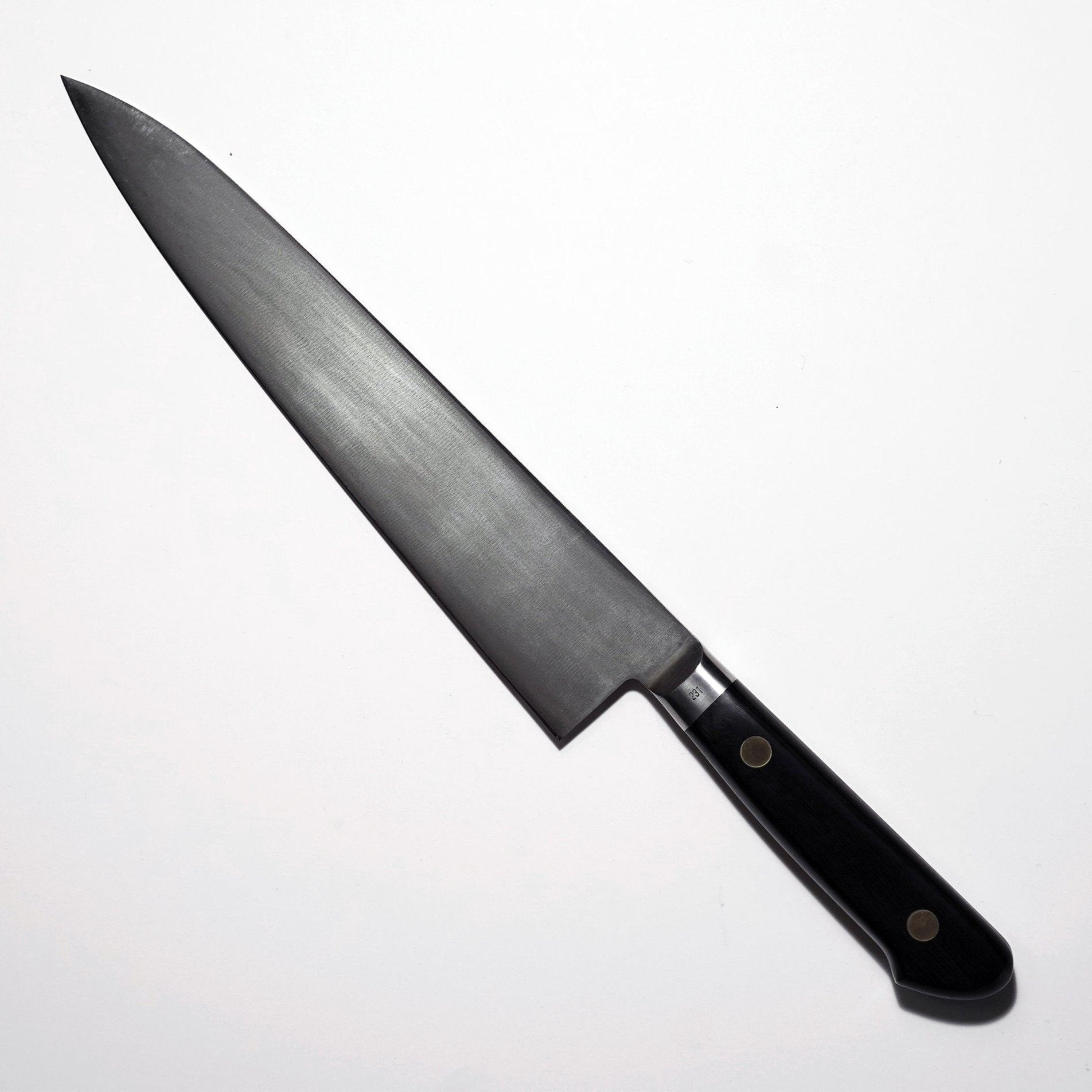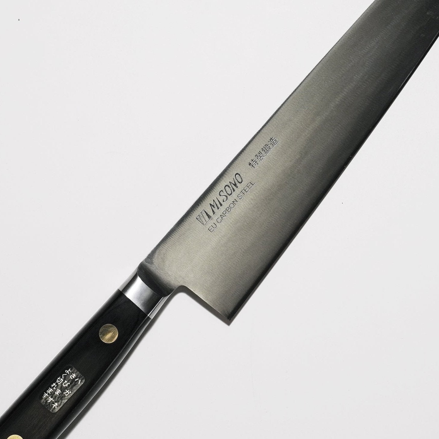 Note: Carbon steel knives require extra care. Keep clean and dry at all times, and oil when stored for extended periods. Avoid prolonged exposure to acidic foods.