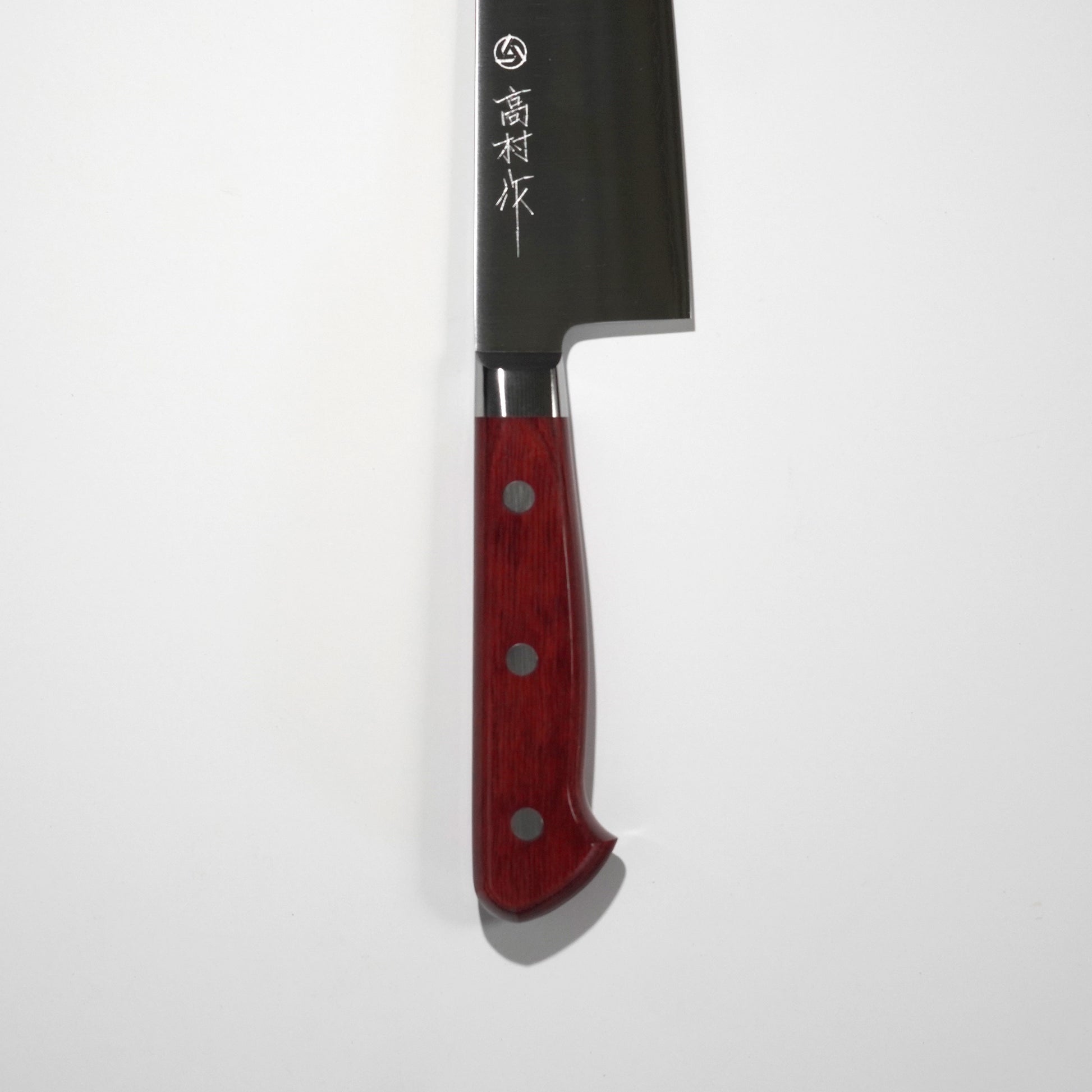 This Santoku knife exemplifies Takamura's world-renowned craftsmanship. Made from R2/SG2 powder metal steel, it combines incredible sharpness with exceptional edge retention. Its sleek, thin blade glides effortlessly through ingredients, while the polished red pakka wood handle provides a comfortable and balanced grip. Trusted by professionals and home chefs alike, it’s an essential tool for precision and performance in the kitchen.
